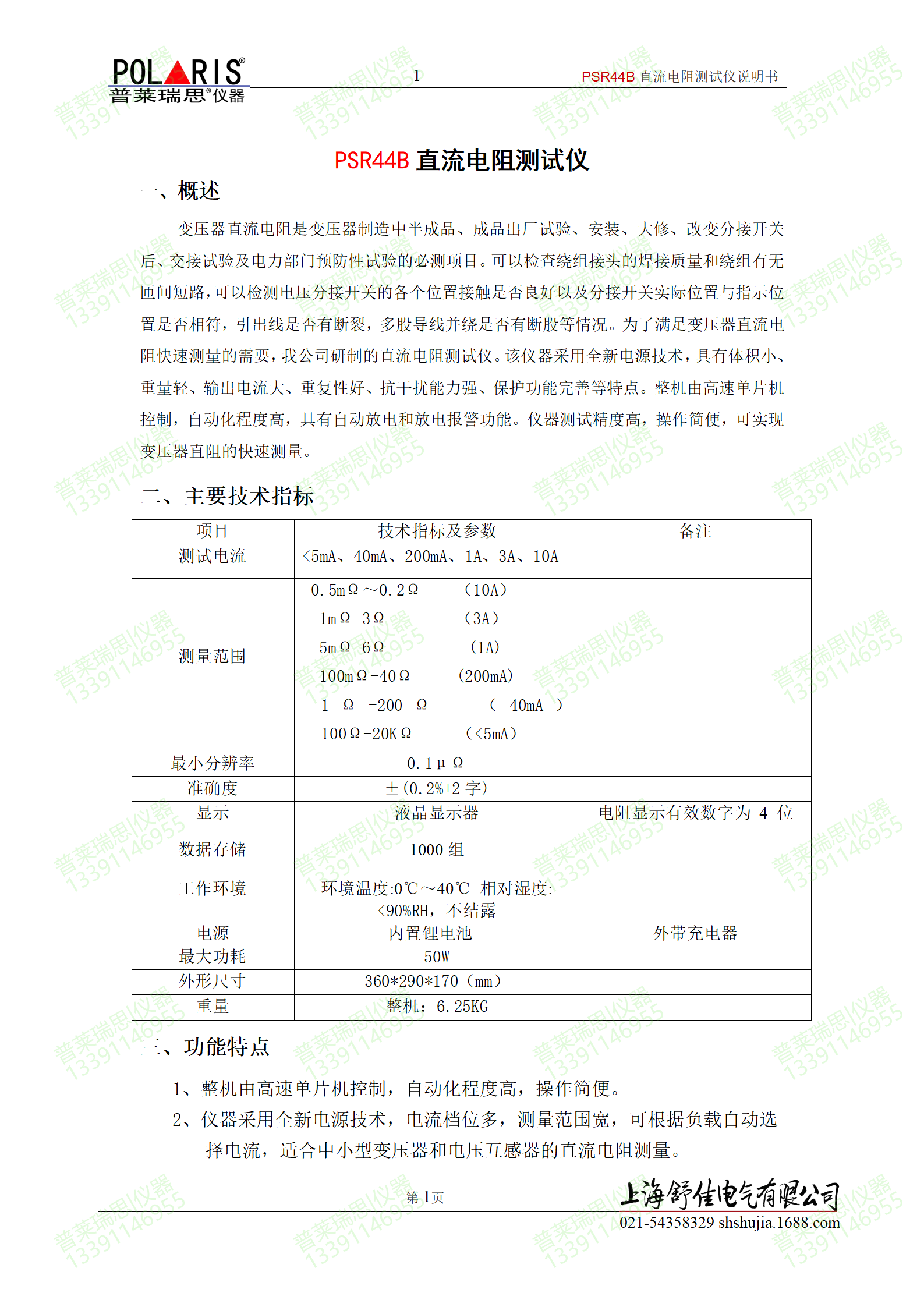 PSR44B直流电阻测试仪仪器采用全新电源技术,具有体积小、重量轻、输出电流大、重复性好、抗干扰能力强、保护功能完善等特点。整机由高速单片机控制,自动化程度高,具有自动放