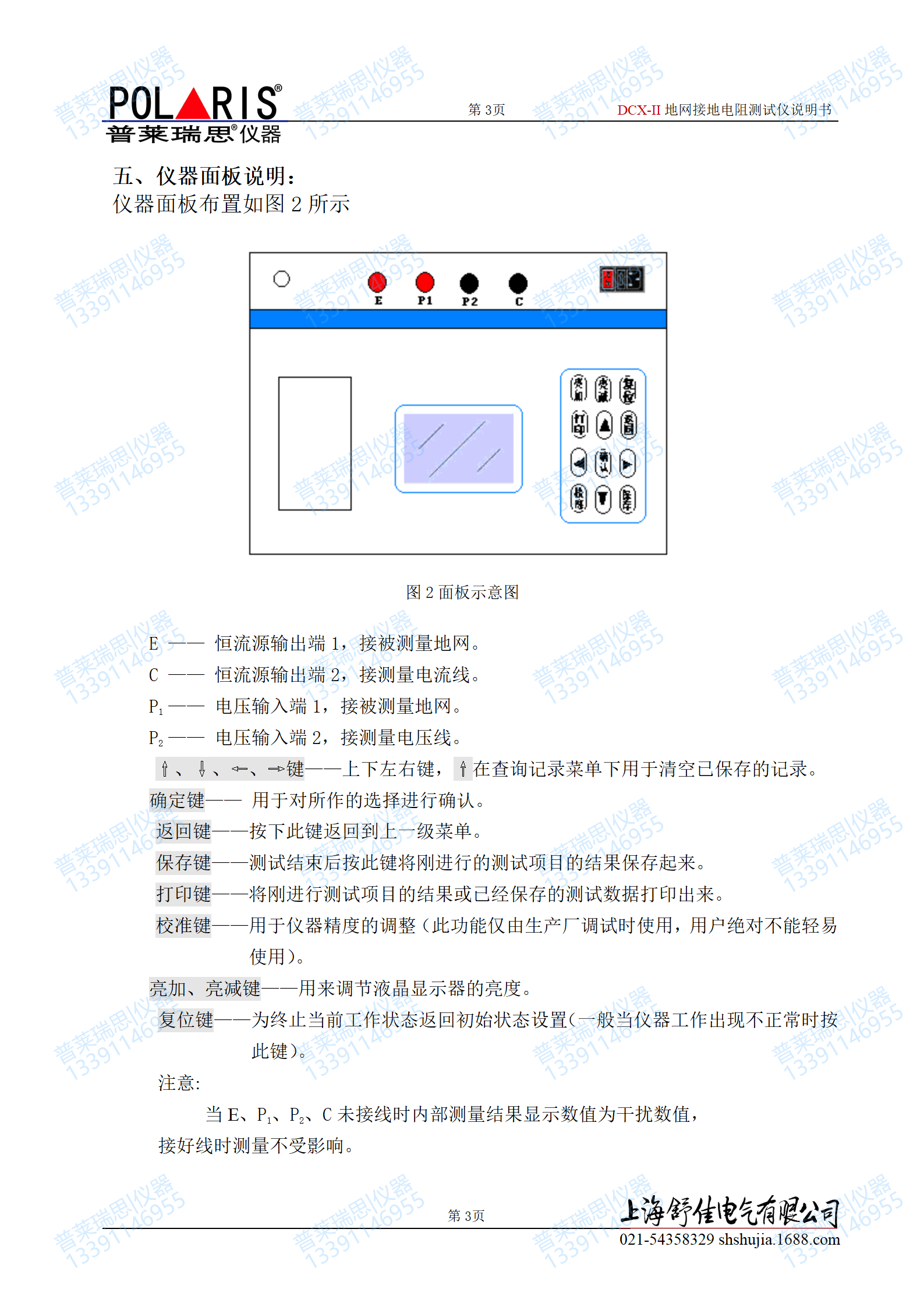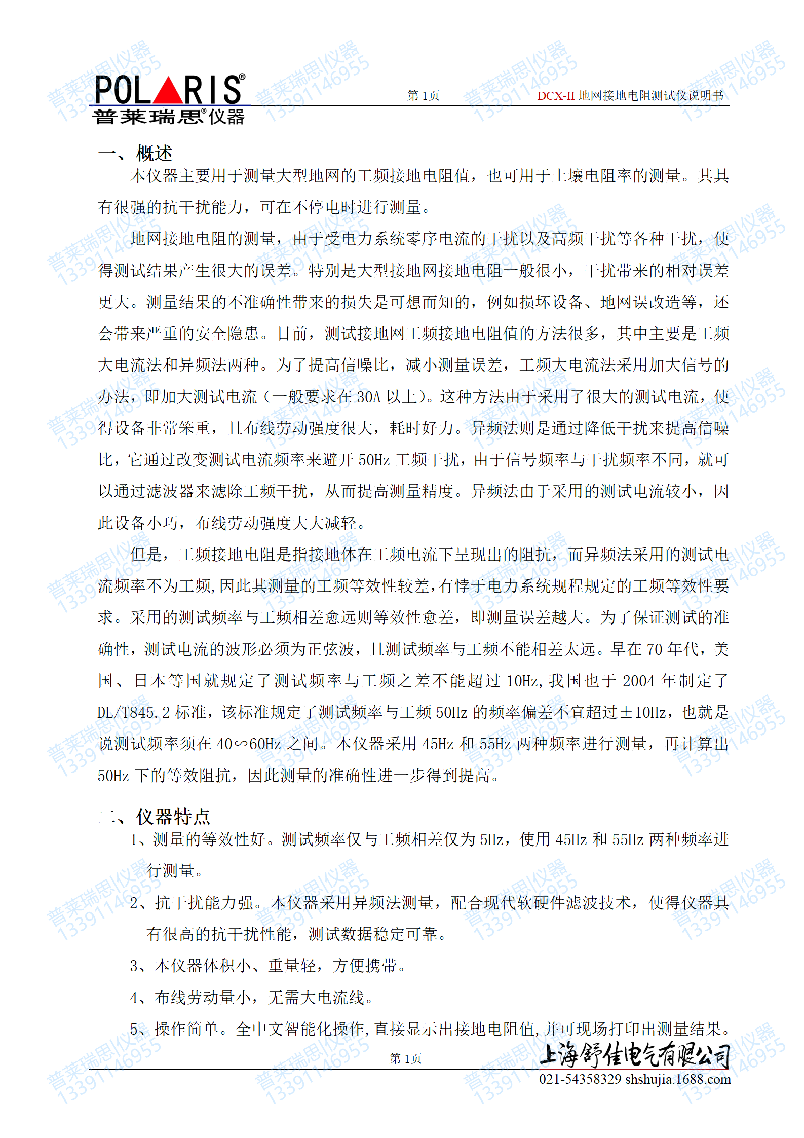 本仪器主要用于测量大型地网的工频接地电阻值,也可用于土壤电阻率的测量。其具有很强的抗干扰能力,可在不停电时进行测量。