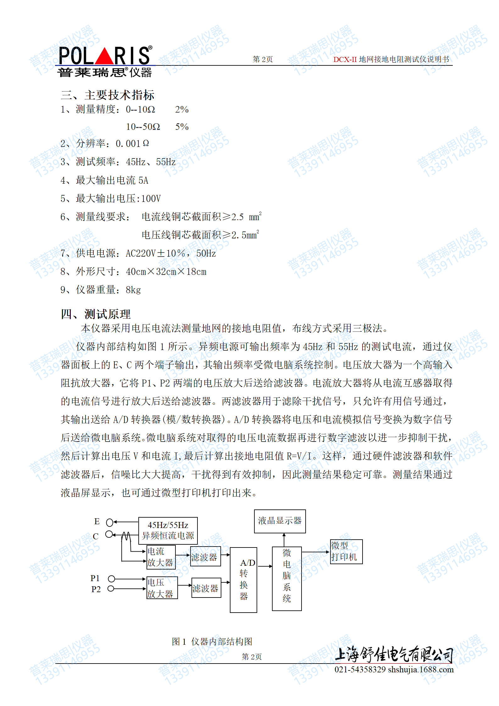 测量精度:0--10Ω(2%)10--50Ω(5%)0.001Ω输出电流5A,输出电压:100V,电压电流线铜芯截面积≥2.5 mm2